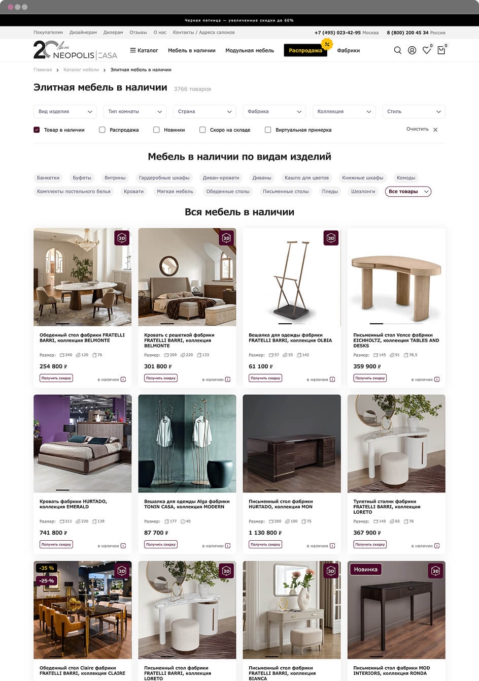 NeopolisCasa — сеть и дистрибьютор интерьерной мебели (Москва / Санкт-Петербург).