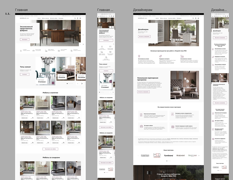 • Провели анализ конкурентов в премиум/мид-премиум сегменте мебели: у многих — перегруженные сетки, слабая типографика и акценты, недостаток внимания к фото-контенту.