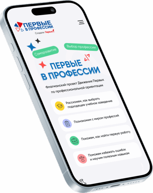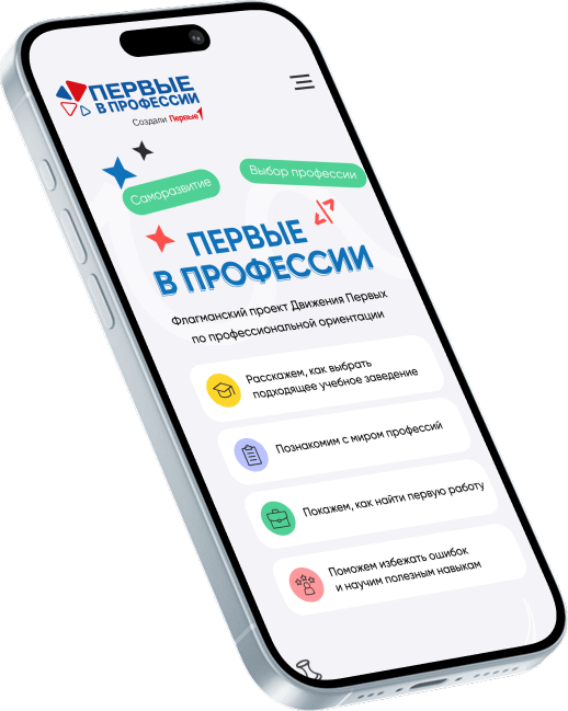 Разработан дизайн сайта «Первые в профессии» для Всероссийского движения «Первые». Интерактивные кейсы, карта профессий и квизы помогают школьникам найти своё призвание.