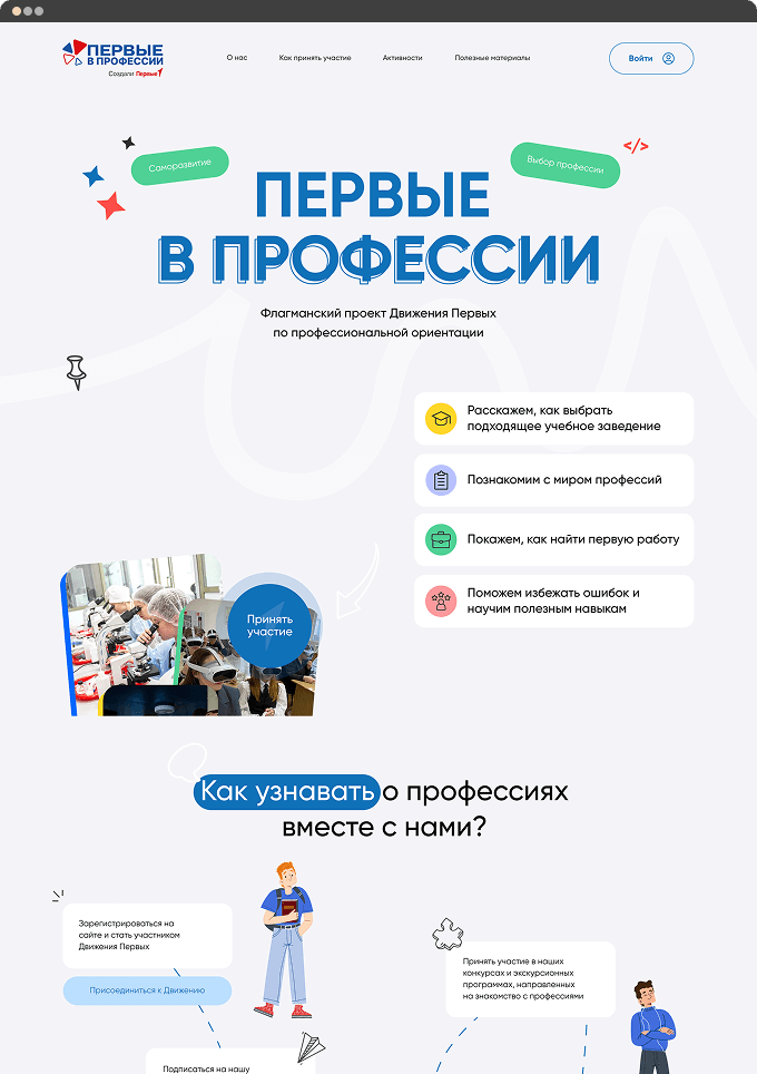 Дизайн сайта «Первые в профессии»: интерактив, бренд и вдохновение для выбора карьеры