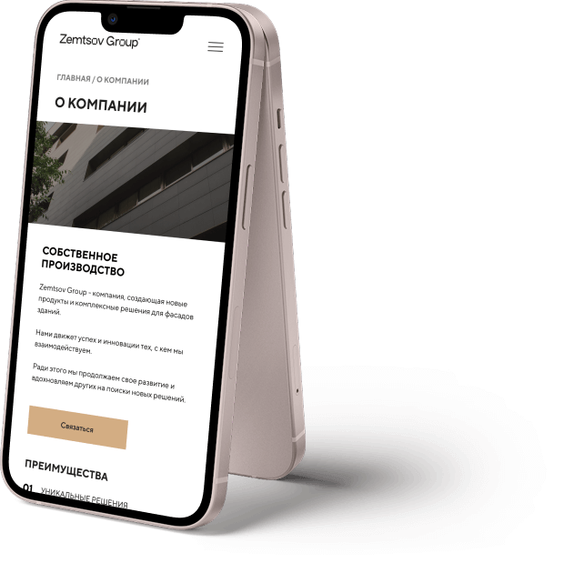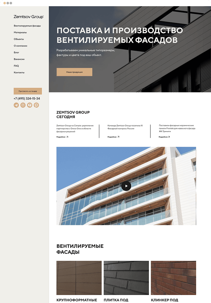 Сайт для производителя вентилируемых фасадов Zemtsov Group — каталог, проекты и технологии