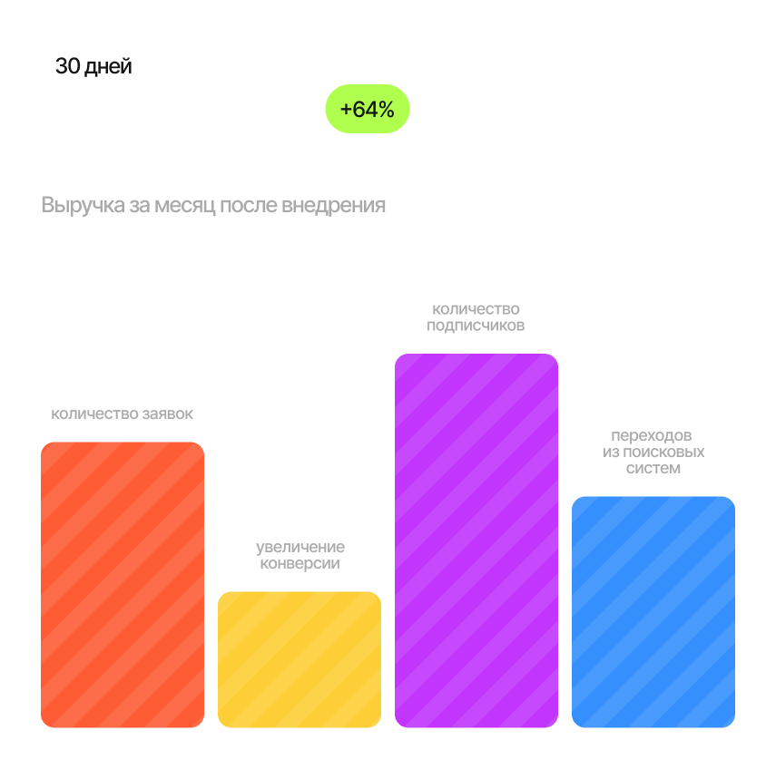 Тестируем и масштабируем работающие решения, что позволяет увеличить поток заявок и продажи в 2–3 раза за 3-6 месяцев.